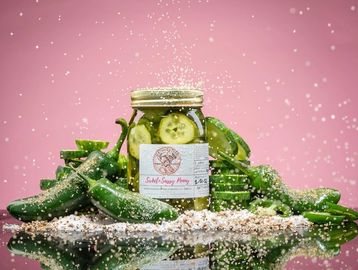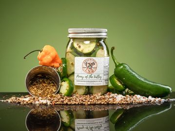 Pickled cucumber with hatch valley green chile, jalapeño, and a touch of habanero. This jar brings the chile capital of the world to your kitchen - 16 oz